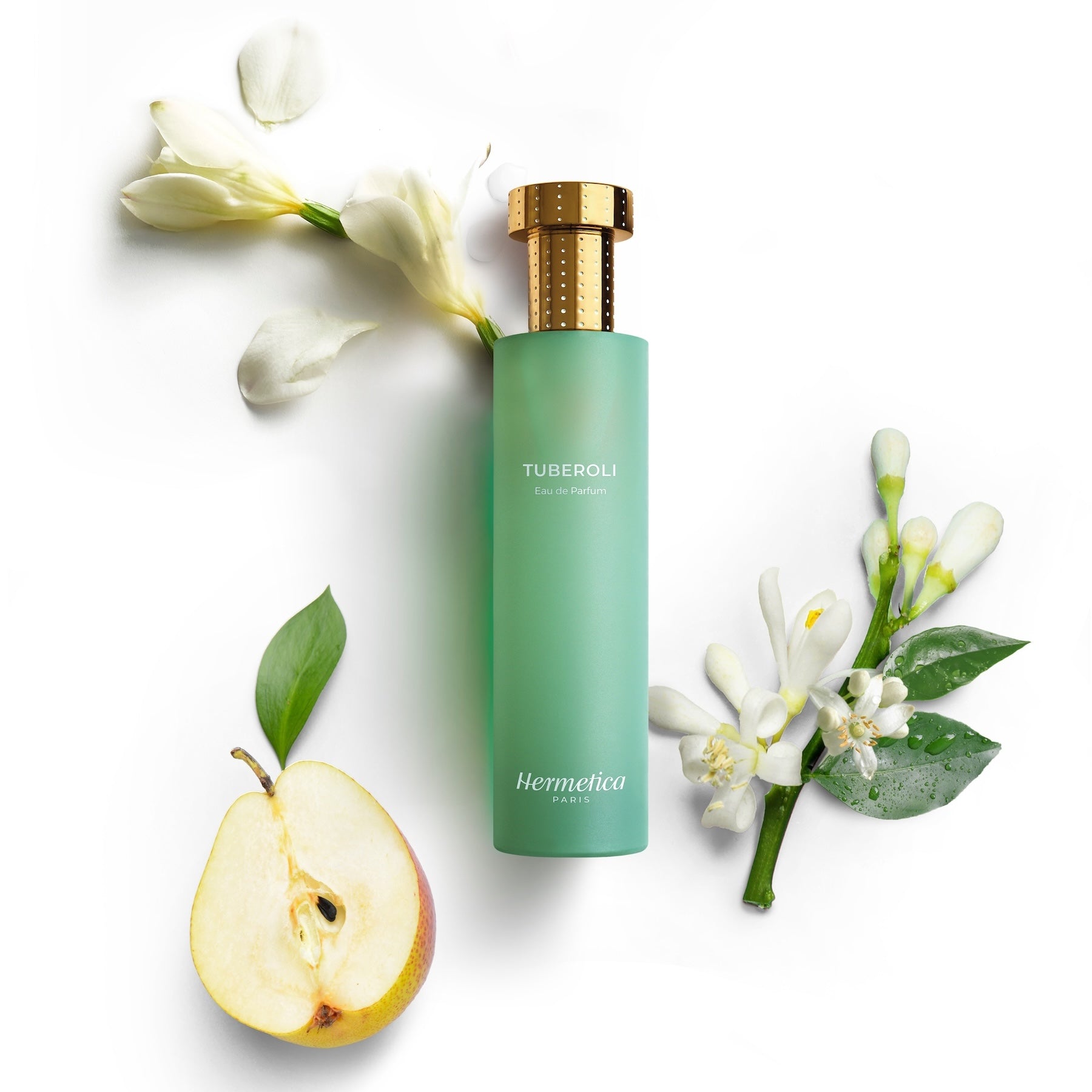 Tuberoli is a floral, fruity fragrance like a summer siesta, gently rocked by the wafting scent of fresh citrus and flowers in the shade of a bitter orange tree. An invitation to enjoy the delights of Tuberose absolute and a soothing duo of Neroli essence and Pear.